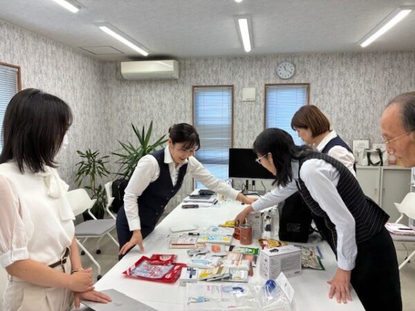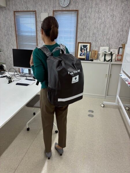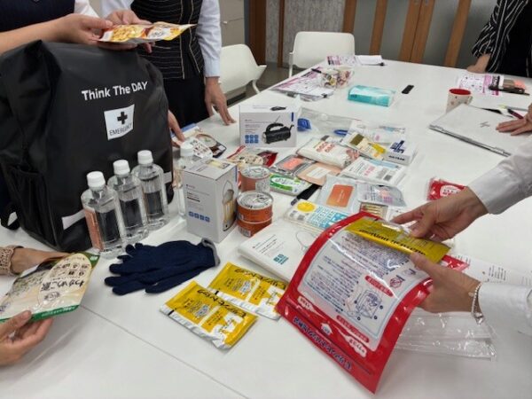 みんなで必要な備えを話合ってから、防災リュックの中身を確認しました。