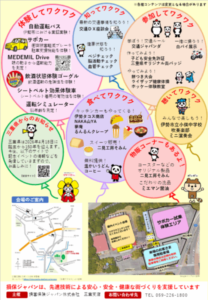 損保ジャパンと伊勢市との合同で「SOMPOパークみえ@伊勢」というイベントを開催いたします。