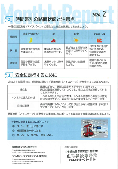 凍結した道路を安全に運転するためのポイントをSOMPOリスクマネジメント社発行レポートをご紹介します。